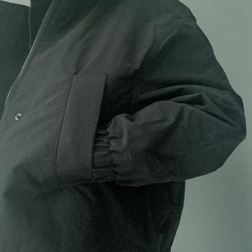 ボンバージャケットタイプのショートブルゾンでモンスターパーカをショート丈にアレンジしたようなシルエットのアイテムで、広幅のフライフロントや袖のエルボー切替え等にその雰囲気を残しています。