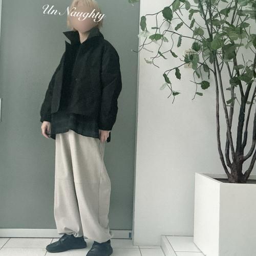 スタンドカラーと身頃裾はストレッチコードでブラウジング可能です。